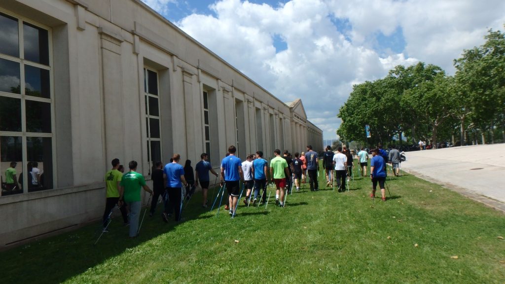 Aquest matí hem col·laborat amb altres companys d’Inwa – Spain fent un seminari pràctic de marxa nòrdica amb els alumnes de 3r del grau de Cafe a l’INEFC de Barcelona. P5130368